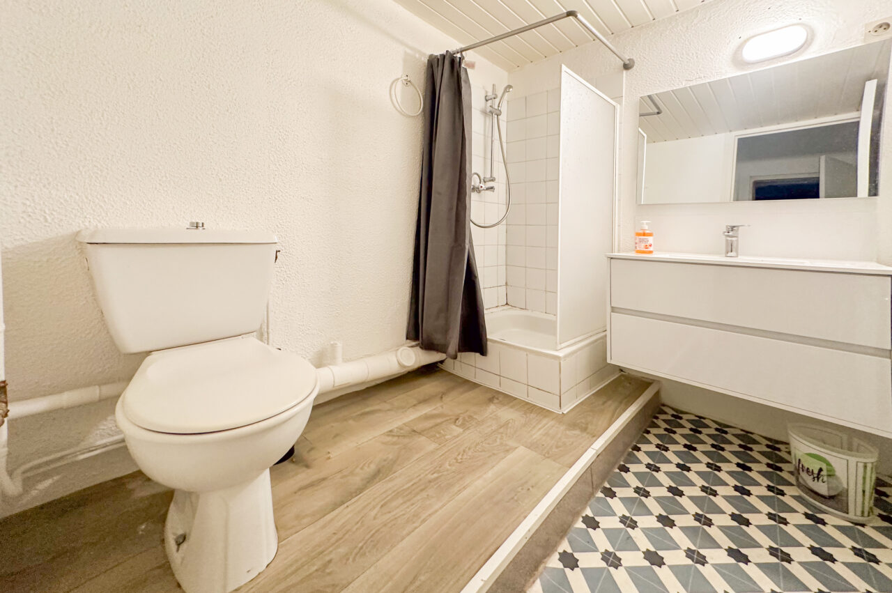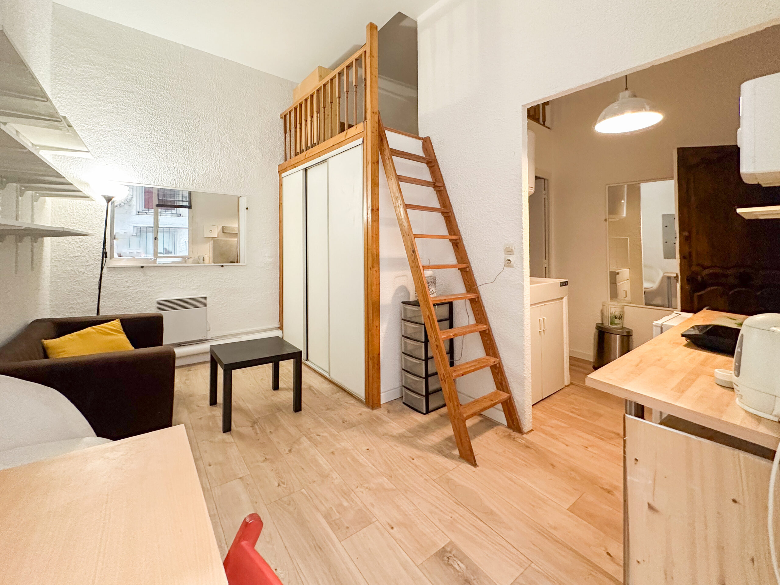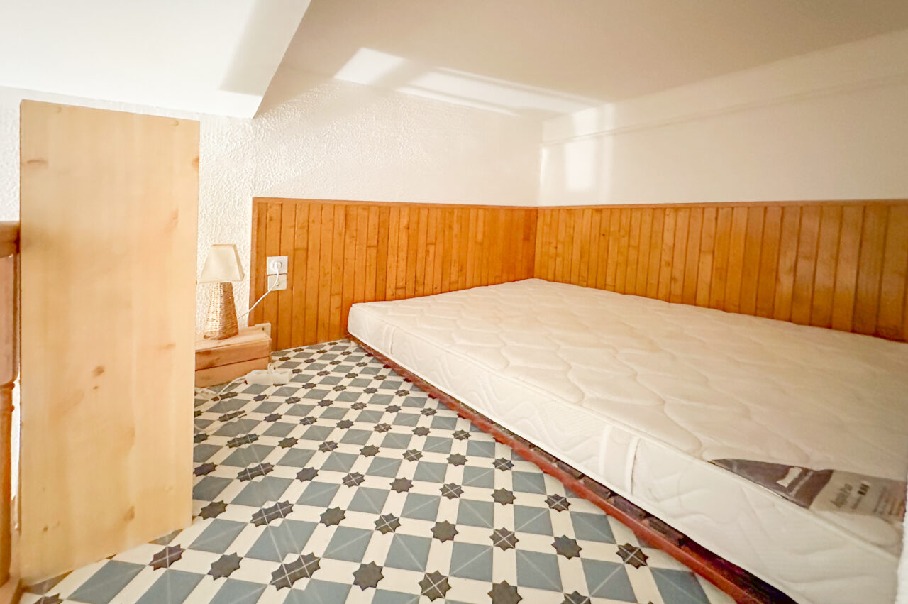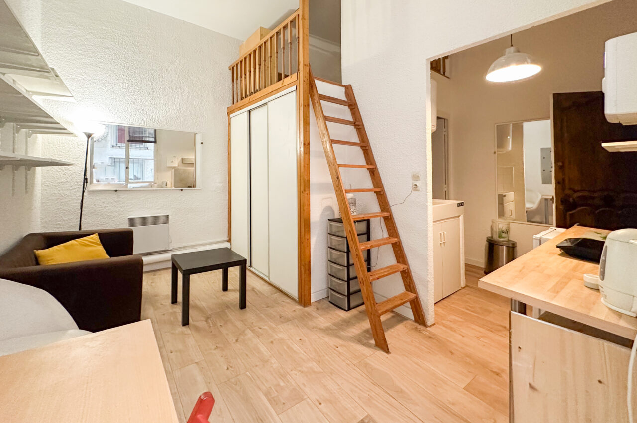 L’appartement, d’une superficie de 18,5 m², se compose d’un séjour bien agencé avec kitchenette. Une mezzanine accueillant un lit permet d’optimiser l’espace de vie. Une salle d’eau avec WC complète le logement, ainsi qu’une petite terrasse, idéale pour profiter des soirées et prolonger agréablement la pièce de vie.