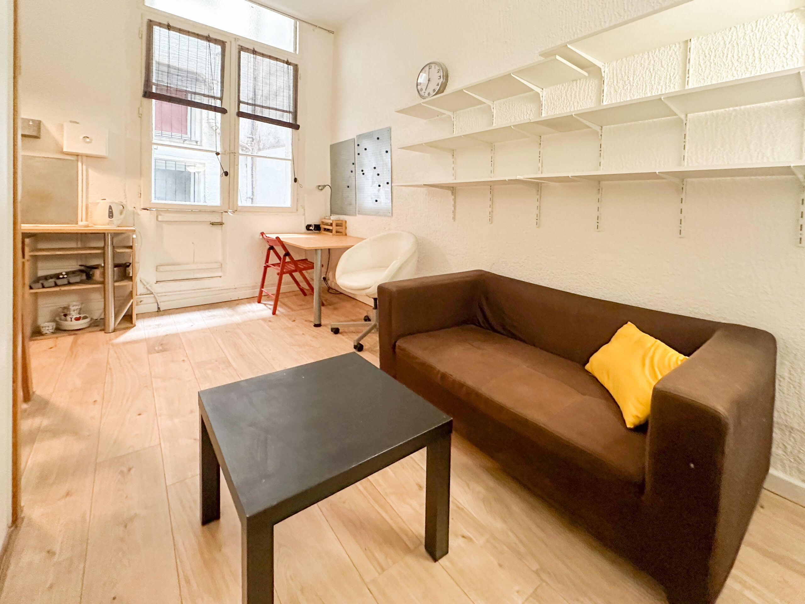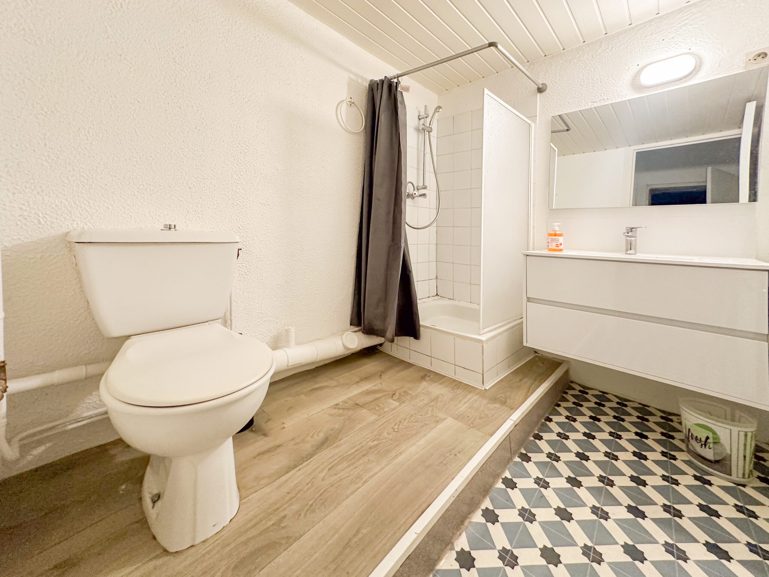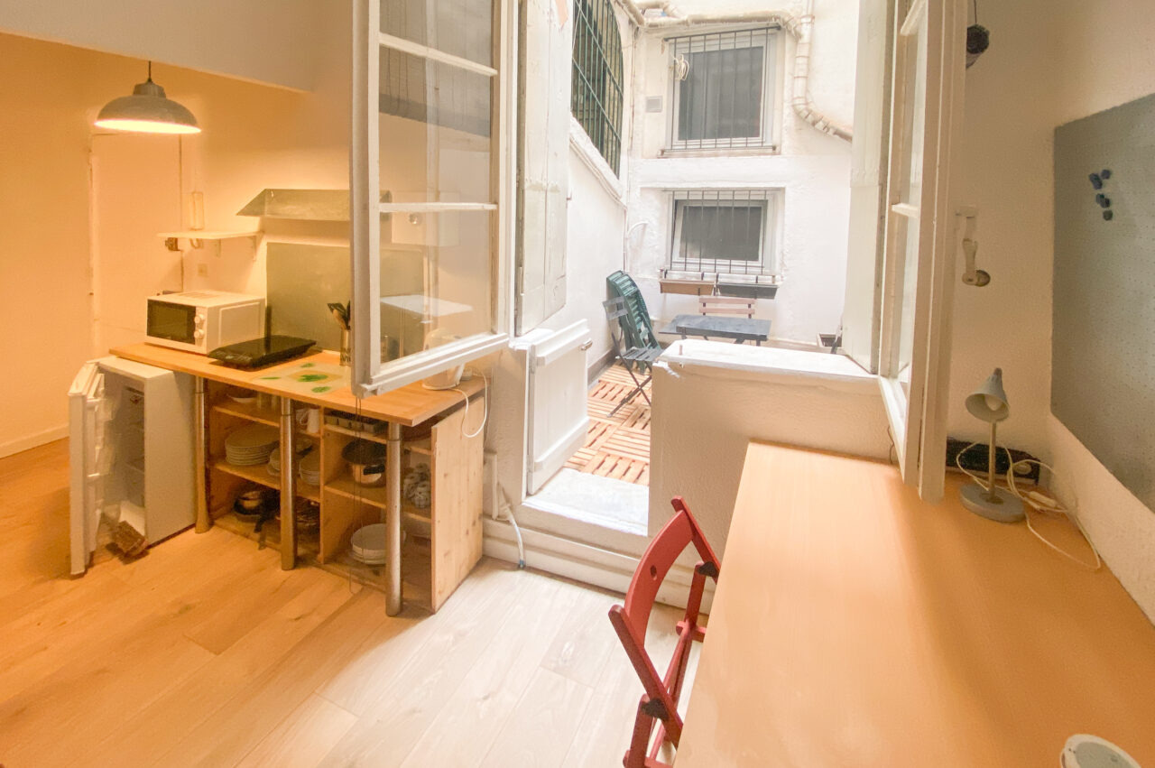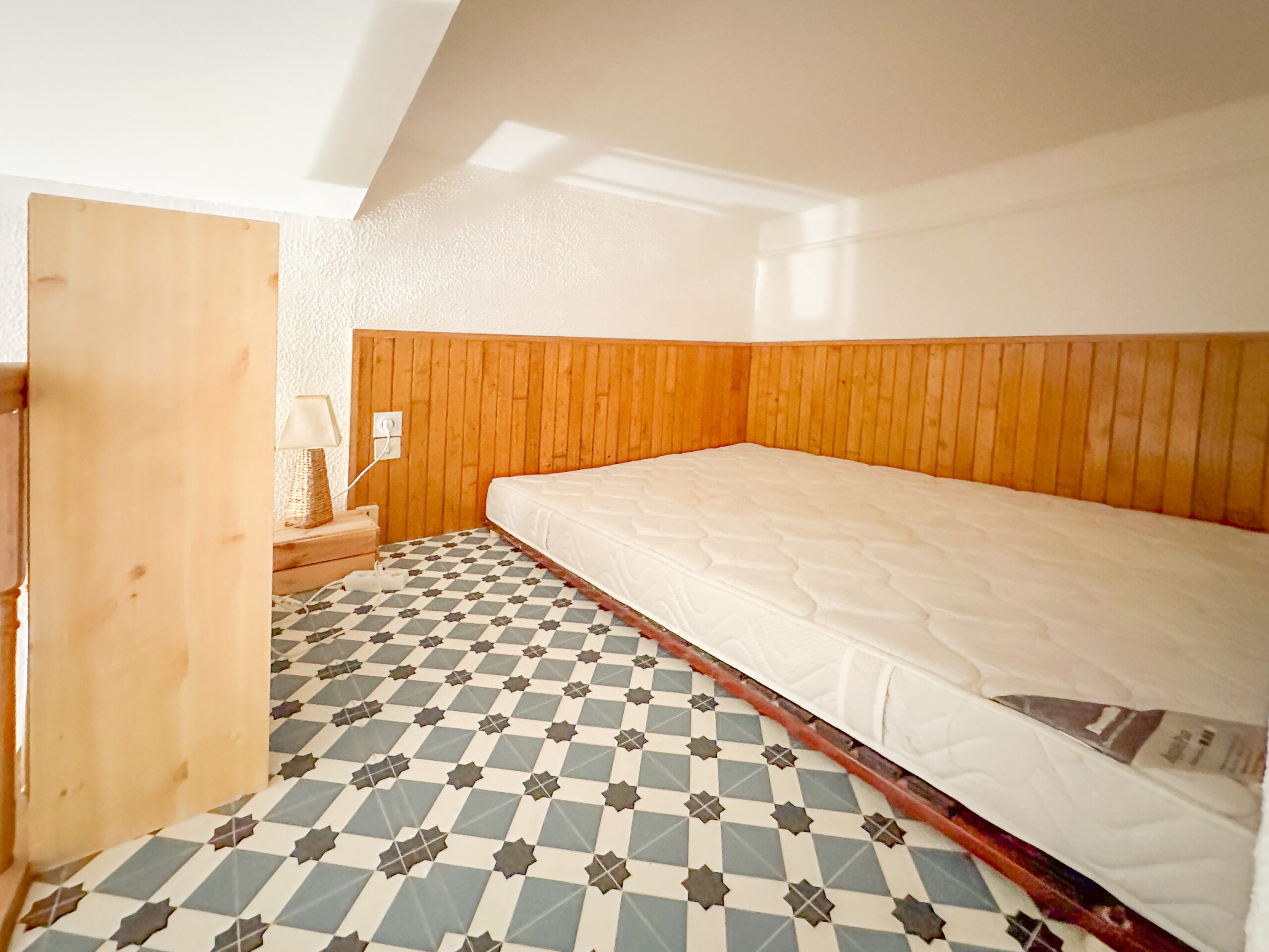 L’appartement, d’une superficie de 18,5 m², se compose d’un séjour bien agencé avec kitchenette. Une mezzanine accueillant un lit permet d’optimiser l’espace de vie. Une salle d’eau avec WC complète le logement, ainsi qu’une petite terrasse, idéale pour profiter des soirées et prolonger agréablement la pièce de vie.