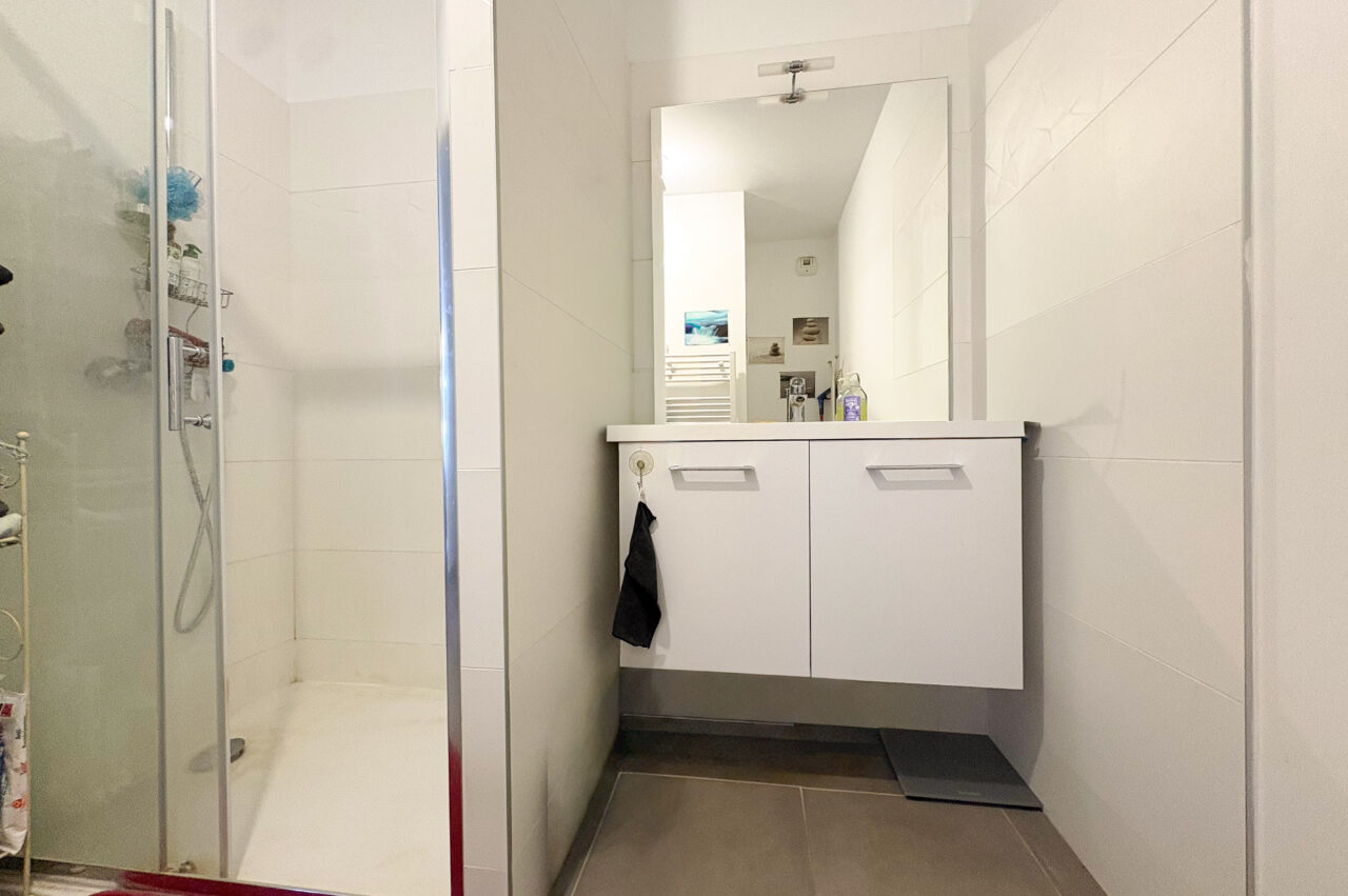 Ce bien se compose d’une pièce de vie lumineuse avec un accès à la grande terrasse de 10m2, un coin cuisine fonctionnelle séparé, d’une grande chambre avec son accès terrasse et des rangements ainsi qu’une salle d’eau avec WC. Il dispose également d’un double garage situé au sous-sol.