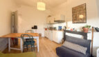 L’appartement, de 47 m², dispose d’un salon lumineux avec une cuisine ouverte entièrement équipée. Il comprend une première chambre spacieuse avec un grand placard mural ainsi qu’une deuxième chambre un peu plus petite pouvant faire office de chambre ou de bureau. Une salle d’eau et des WC séparés complètent le logement.